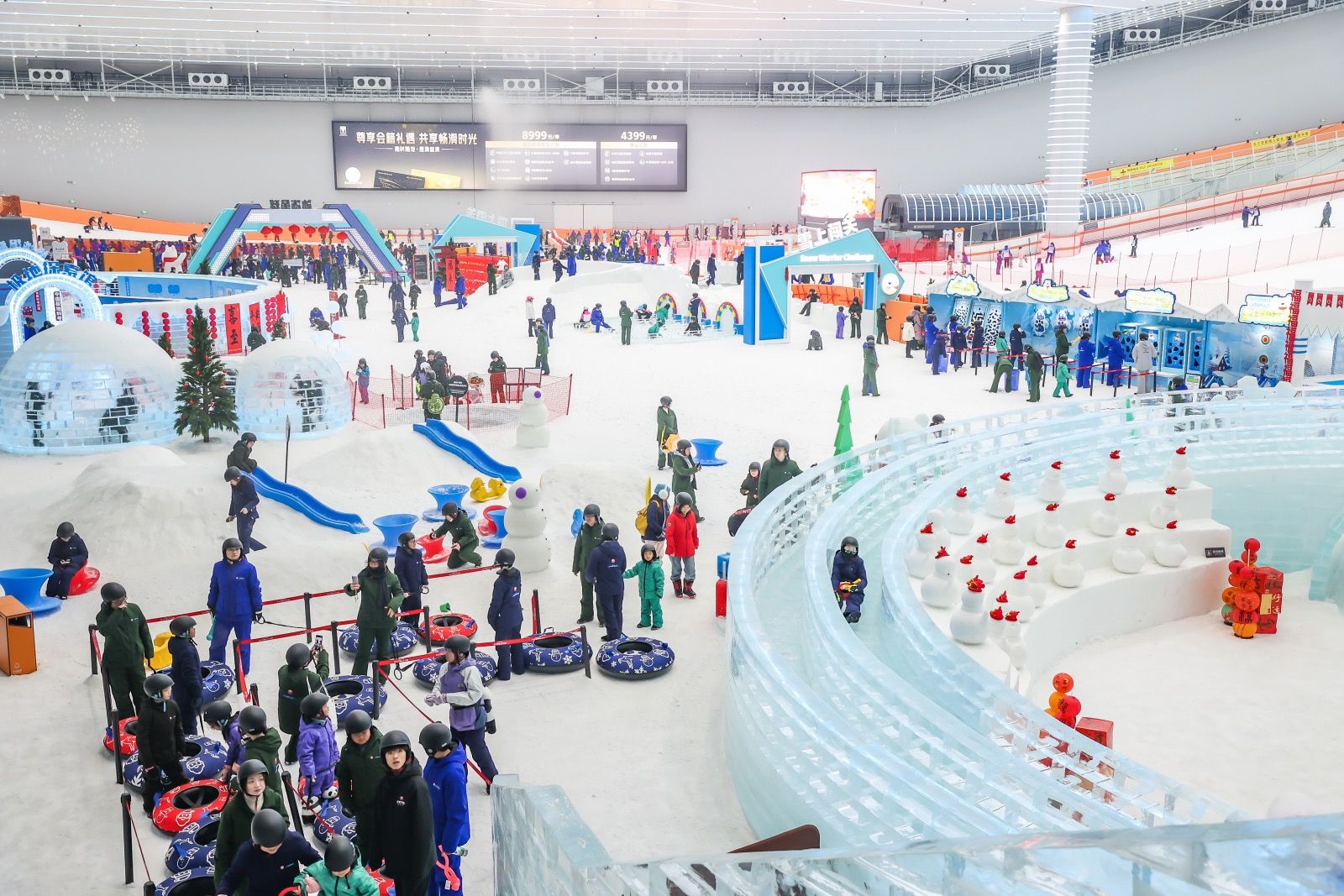 在这里,创意烟花、新春灯展、非遗大戏轮番上演,为游客带来一场场视觉盛宴。甘露山国际滑雪场变身年味游乐场,4600平方米超大娱雪区仿佛将东北冰雪大世界搬至武汉。雪地捞金活动让雪场变成金池,寓意新的一年财源滚滚。此外,约1万朵玫瑰点缀冰雪世界里百米玫瑰雪圈道以及冰冻时光的新禧许愿墙,每个角落都是满满的年味与惊喜。