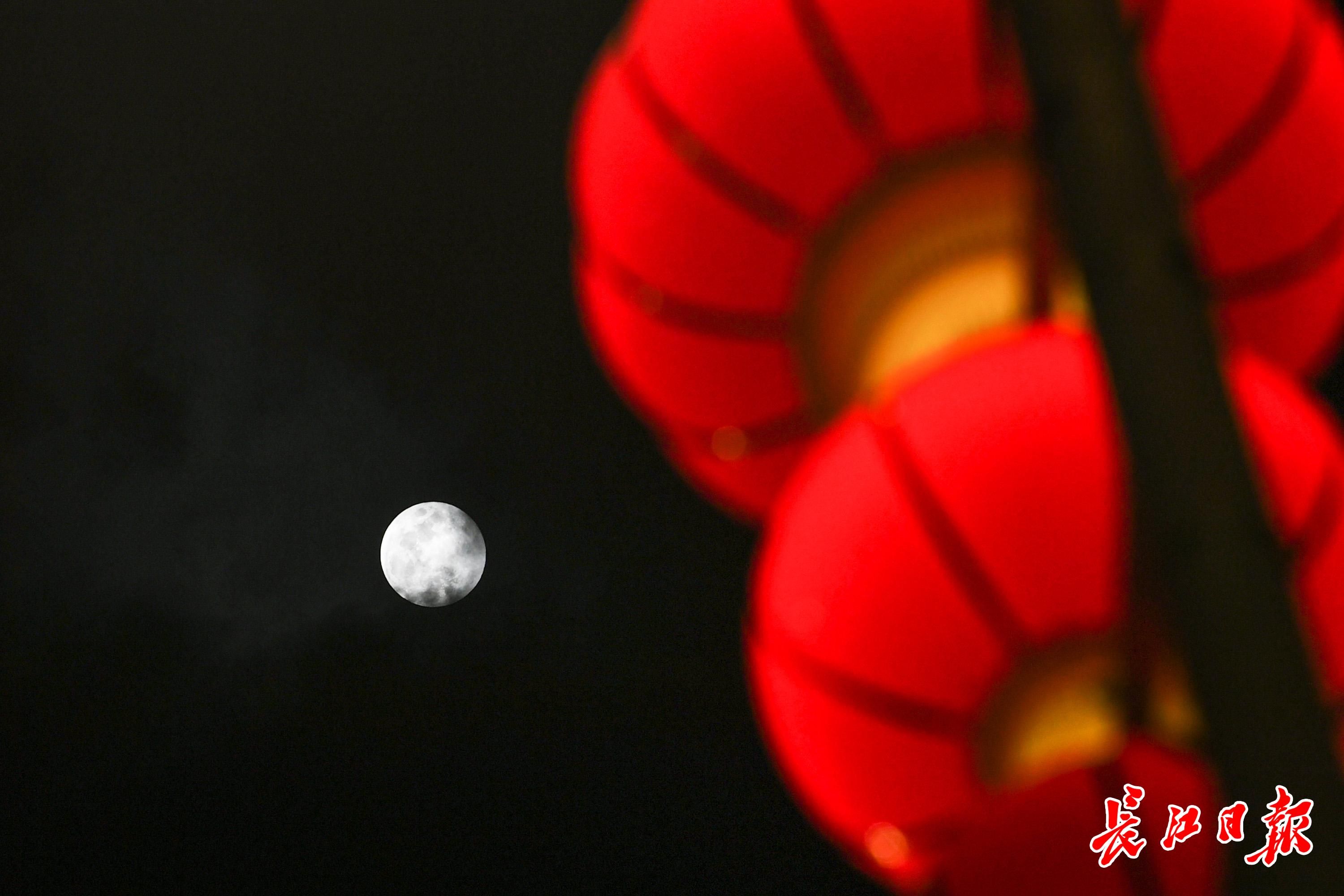 十五的月亮十五圆。2月12日22时左右,月亮穿过厚厚的云层,悬挂在武汉夜空,为人们欢度元宵助兴。当天北京时间21时53分,月球、地球和太阳三个天体排成近似一条直线,月亮将向地球呈现最圆满的状态,这也是从2024年开始连续三年正月十五都恰逢满月的第二年。