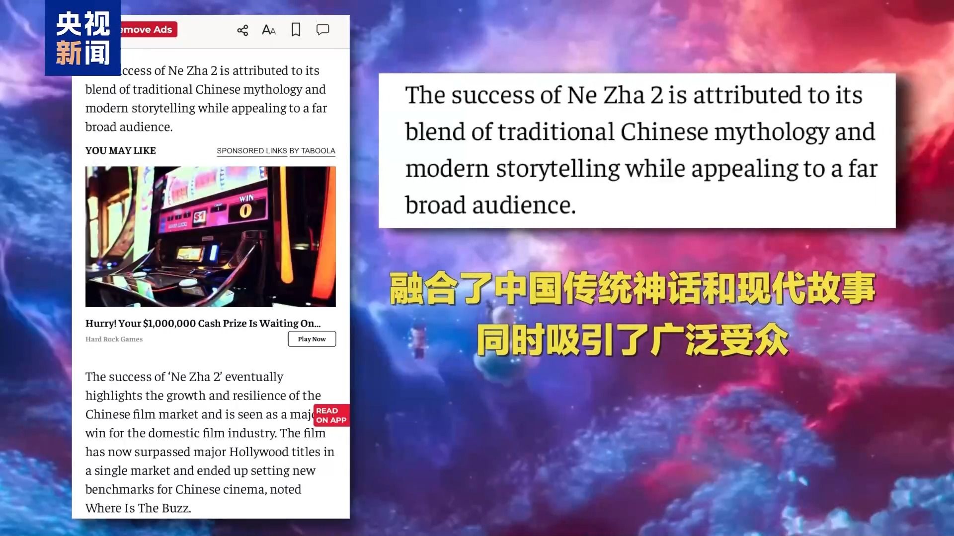 美国全国广播公司在报道中称,“中国动画电影打破票房纪录并进军海外”。文章强调,《哪吒2》是“第一部票房突破10亿美元大关的非好莱坞电影。”