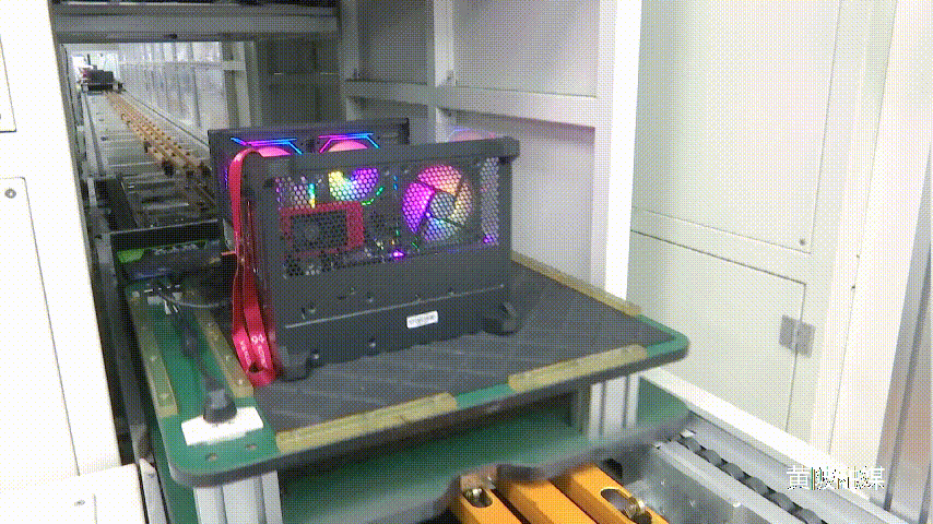在预组装区域,传送带上平均不到30秒便完成一项组装工序,工装板随即自动传递至下一个工序。在组装区,多名工作人员紧密合作,熟练地对机箱进行拆除侧板、安装铜柱、电源等操作,随后产品进入隔离老化区,接受严格的综合耐压测试,再经过人工审核和安规例行检测,层层把关,确保每一台定制电脑都品质过硬。
