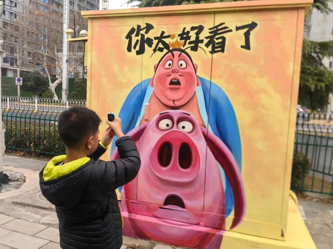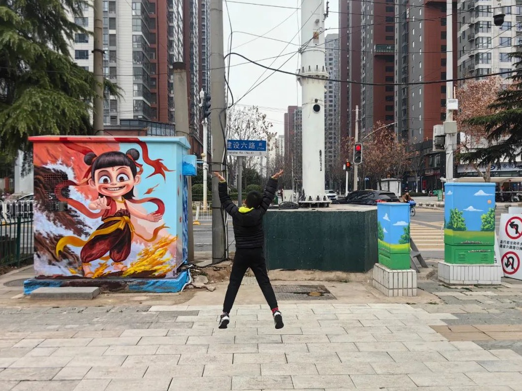 在《哪吒之魔童闹海》跻身全球票房榜第七名的今天,我和儿子在这短暂的时光里,仿佛踏上了一场奇幻之旅。这些街头绘画,巧妙地将电箱这种城市基础设施化作艺术展示的舞台。它们不仅美化了城市环境,还能让路过的行人回忆起电影中的精彩情节,感受到角色的独特魅力,受到美的熏陶。如此别具匠心的创作,实在值得我们为之喝彩。