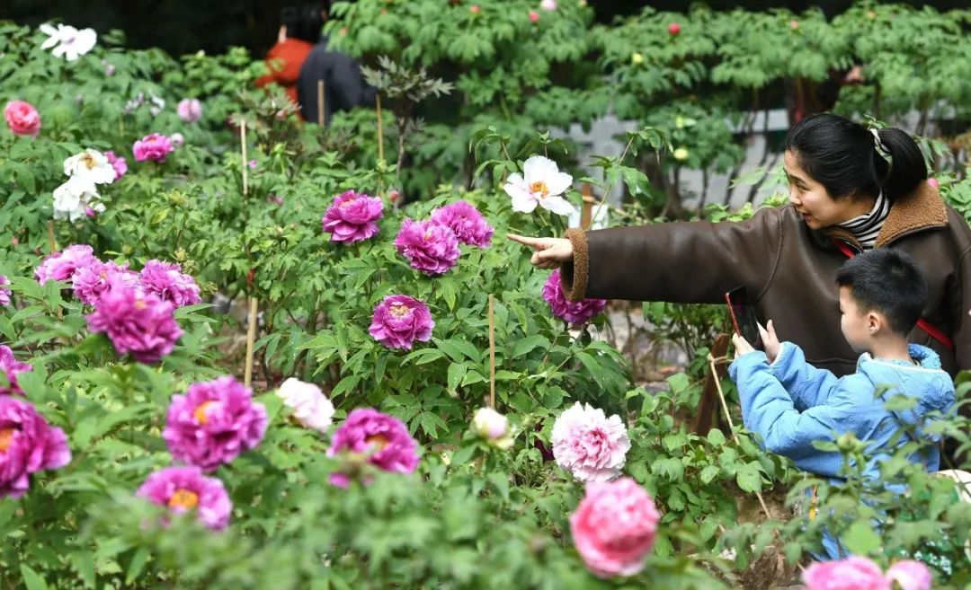 ● 汉阳公园牡丹园里600余株牡丹花竞相绽放,吸引游客观赏。