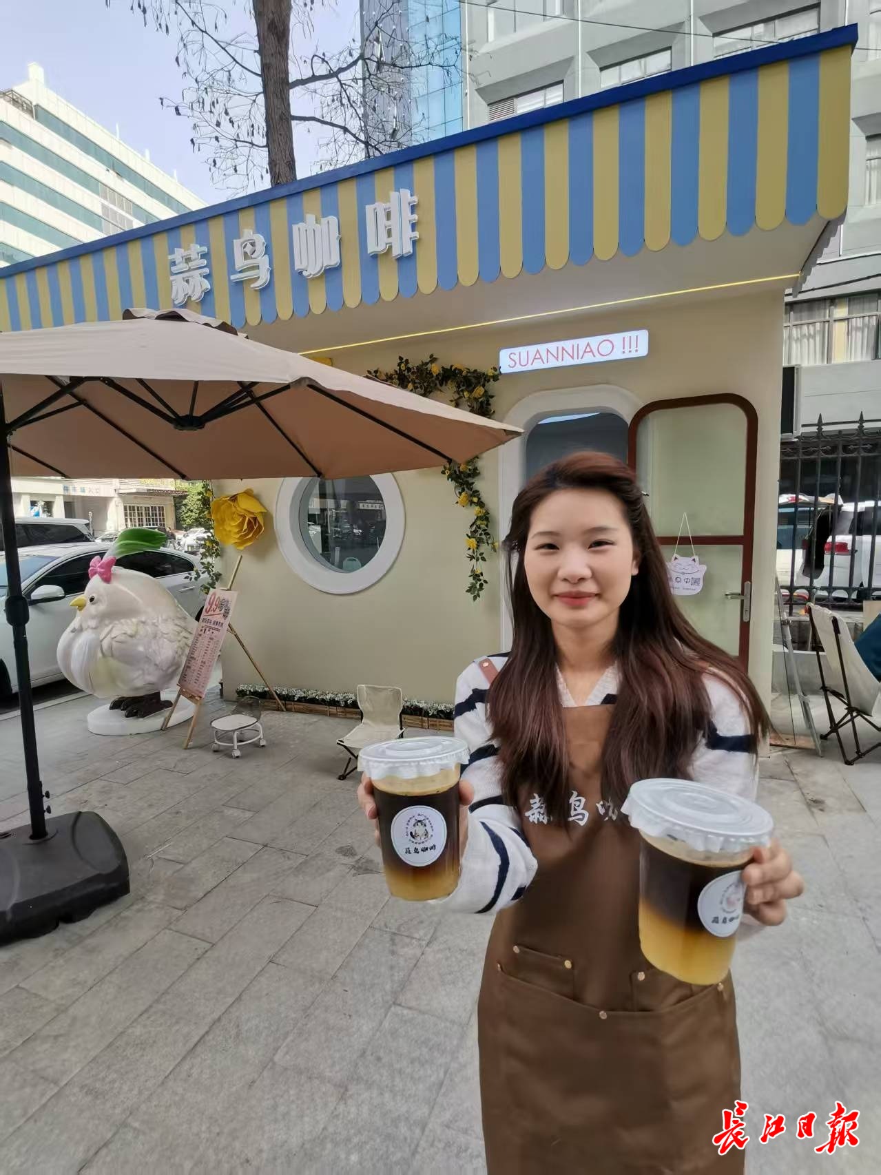 今年春节,蒜鸟走红网络,汪慧玲也深受启发,决定开一家蒜鸟咖啡。经过多方调查,她最后选择在汉口火车站附近开店,在尝试创业的同时为南来北往的旅客提供一个网红打卡点。