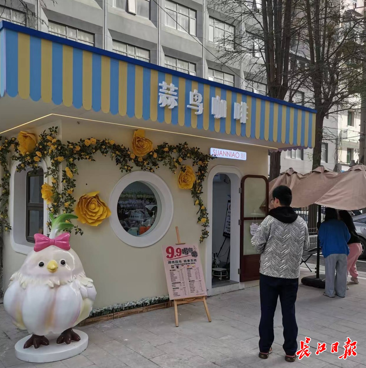 4月1日上午9时,长江日报记者来到位于金墩街汉口火车站附近的蒜鸟咖啡店,前来打卡拍照买咖啡的顾客络绎不绝,很多人都是旅客。