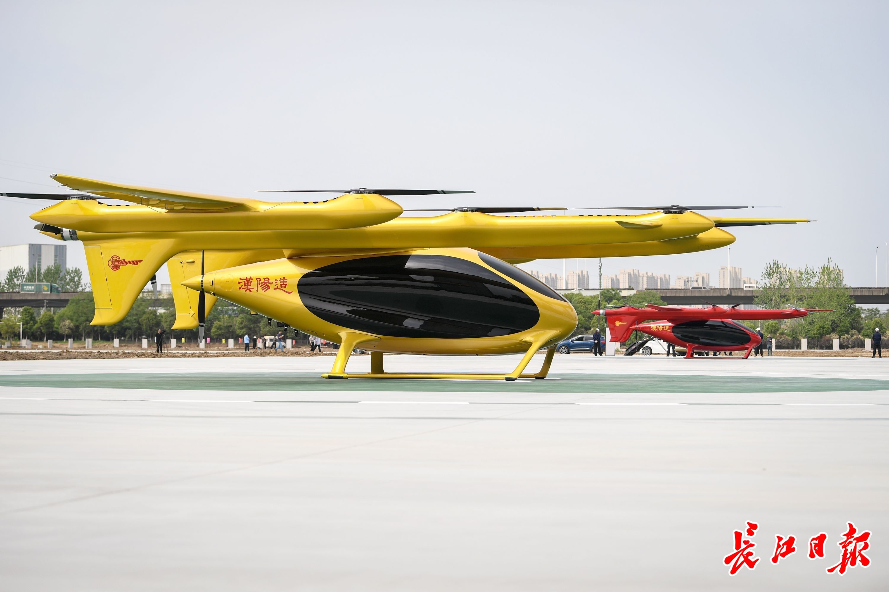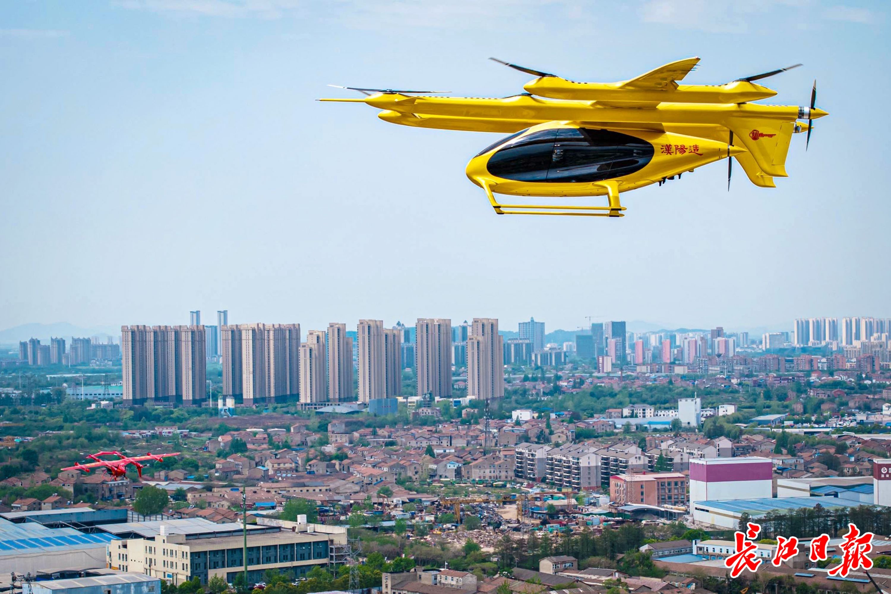大型无人机——吨级eVTOL(电动垂直起降航空器)首次在武汉上空演示飞行。 长江日报记者 史伟 摄