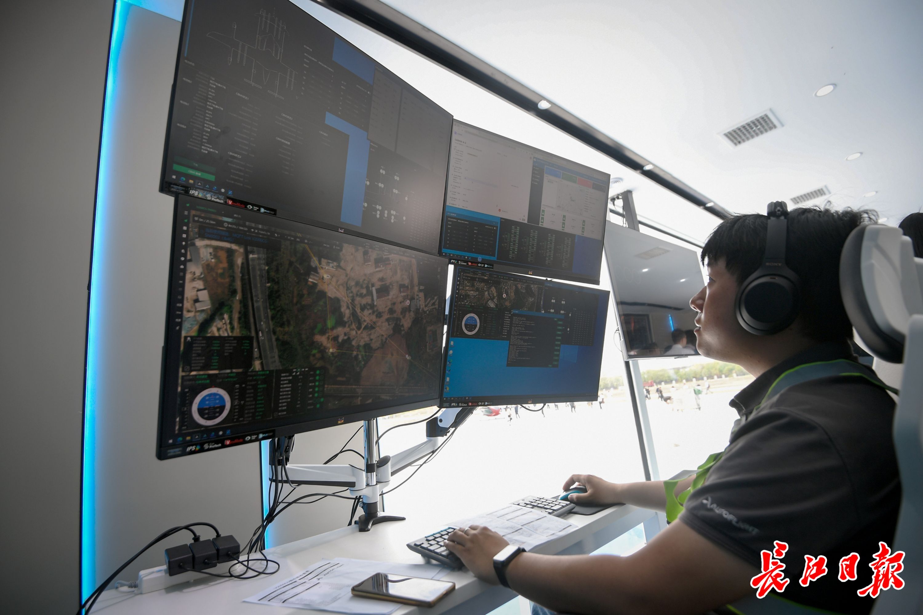 工作人员在低空生态指挥中心内操作监控无人机运行。 长江日报记者 史伟 摄