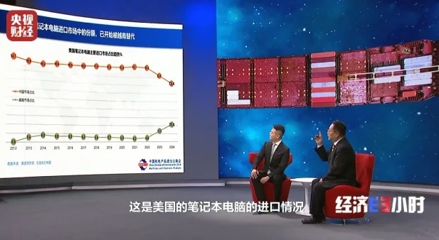 中国机电产品进出口商会副会长 石永红:2024年美国自中国进口的手机数占比占到了82.1%;前些年90%以上的笔记本电脑都是来自中国,这两年略有下降,也还有73%,它如果不豁免加征的关税,在美国市场这两个产品将会陷入短缺状态。