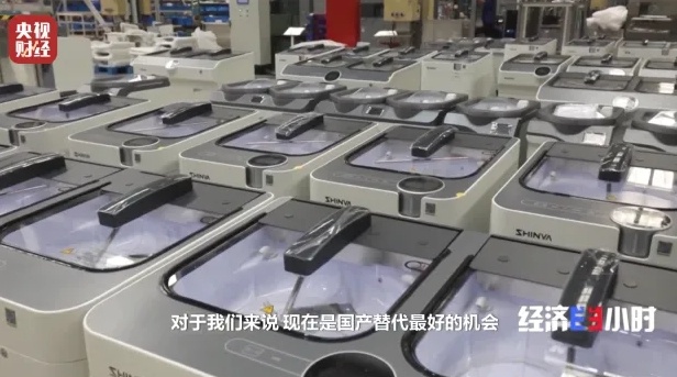 产品走出去、人员走出去,这家企业加快了全球化的步伐,同时也将目光转向国内市场。记者在发货车间注意到,设备铭牌已不再是纯英文,他们的设备正在更多医院落地。