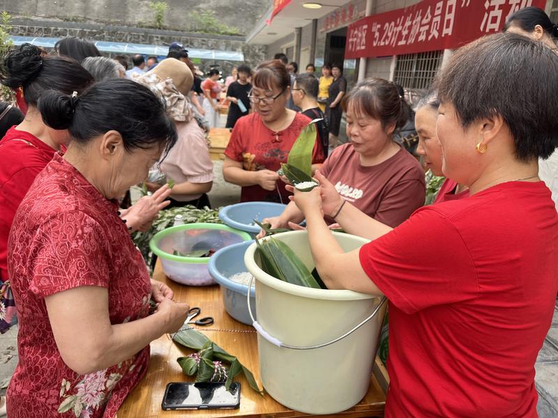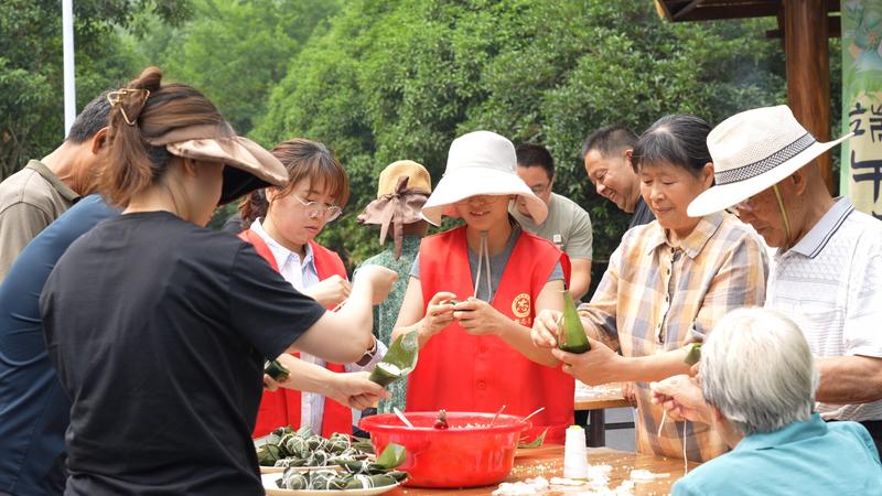 活动现场,村民和镇村干部一起包粽子、制作艾草花束、画团扇……大家动作娴熟,配合默契。鸟啼虫鸣与谈笑风生交织,勾勒出一幅和谐美好的乡村画卷。