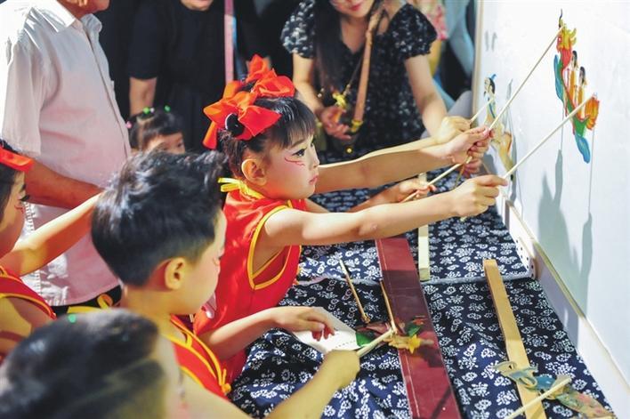 5月27日,夷陵区“遗见粽情·童享端午”文明实践活动在区文化馆举行。图为孩子们体验皮影戏的魅力,接受传统文化的熏陶。 记者 周卓然 摄
