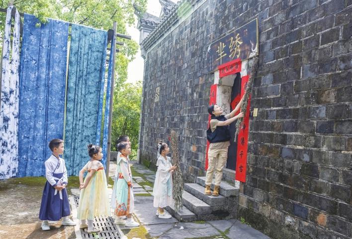 5月28日,秭归县一学校老师带着学生在古民居挂艾草。 通讯员 郑家裕 摄