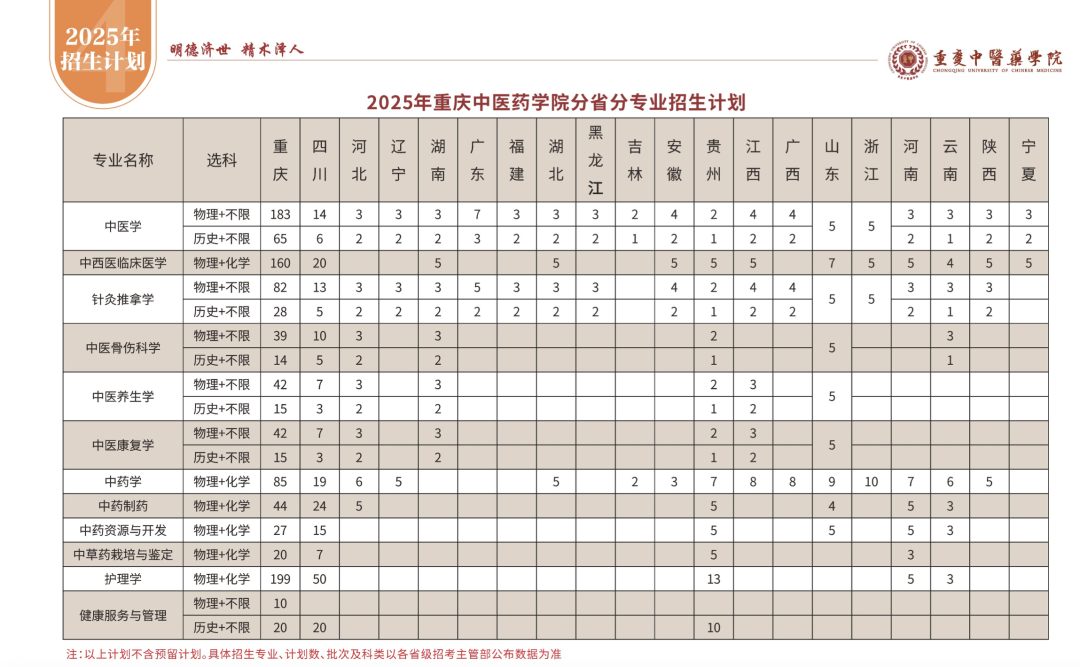 值得注意的是,重庆中医药学院今年的中医学、针灸推拿学、中医骨伤科学、中医养生学和中医康复学5个专业在选科方面新增了历史类,并且再选科目不限。