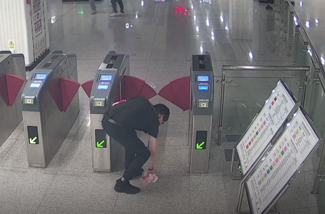 随后进站的一位戴眼镜的男士发现地上的现金,立即告知安检员吴亨特。吴亨特将现金全部捡起,经清点为2800元,并报告值班站长蒋晶。
