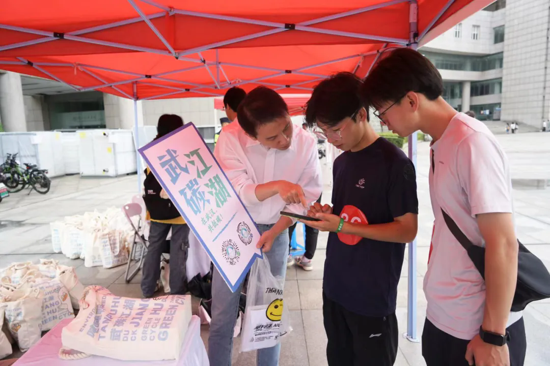 武汉碳普惠公司工作人员向大学生推介“武碳江湖”小程序。