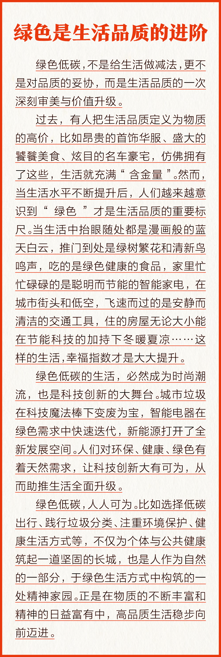 长江日报头版刊发评论《绿色是生活品质的进阶》。