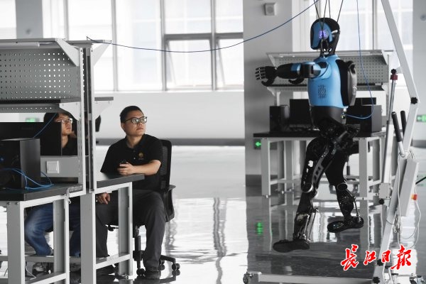 光谷东智人形机器人生产车间,光谷东智员工正在调试优化人形机器人。 长江日报记者高勇 摄