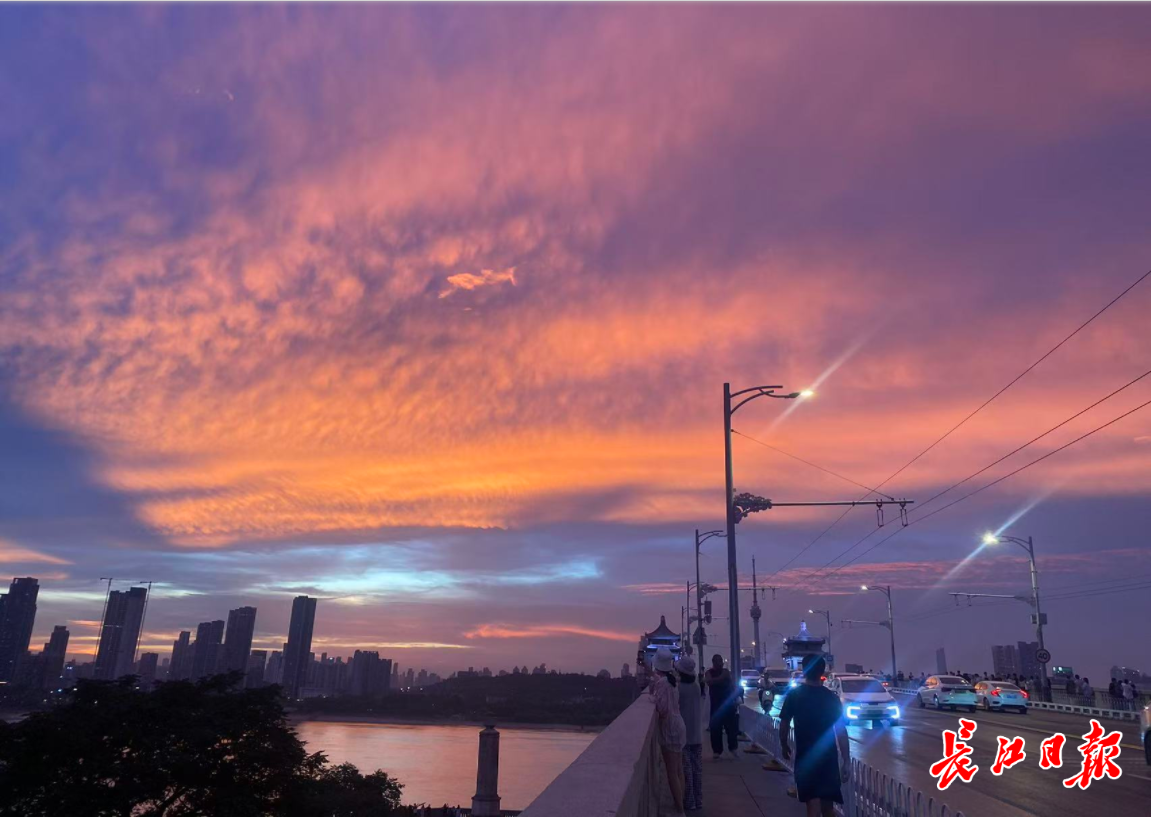 “今天的云太美了,完全不用加滤镜!”8 月26日傍晚,来自上海的14岁女孩何其恬,和家人站在长江大桥上眺望落日熔金、晚霞漫天,忍不住拿出手机记录。这次武汉之行,甜甜一家用两天时间解锁了多样玩法:坐空轨、漫步武汉大学、夜上黄鹤楼;还参观湖北省博物馆和湖北省美术馆,沿着东湖绿道漫步。最让甜甜难忘的,是8月26日晚眺望到两江四岸亮灯的瞬间:“长江大桥两侧的桥梁同步亮起,各有各的美,映着江面特别震撼!”