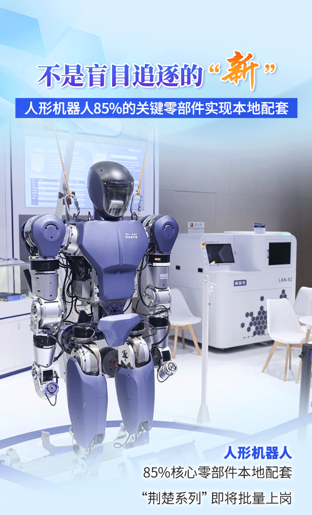 看人形机器人,武汉及都市圈五城串起150公里产业带,7家整机企业冲刺量产,85%的关键零部件实现本地配套。以湖北人形机器人创新中心为圆心,近百台机器人在超市、餐厅、工厂、实验室等场景展开训练,“十八般武艺”逐步掌握。
