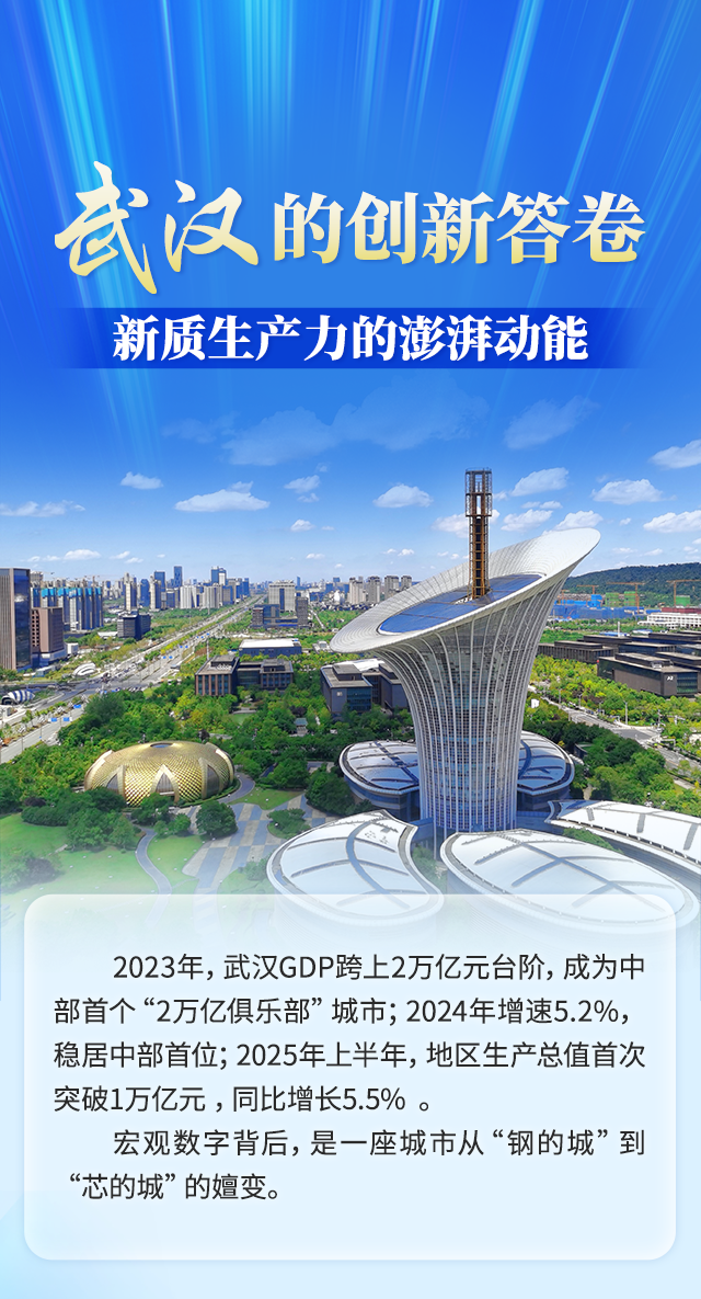 2023年,武汉GDP跨上2万亿元台阶;今年上半年,全市地区生产总值突破1万亿元,增长5.5%,城市创新能级实现历史性跨越。其中,人工智能、商业航天、工业母机等产业规模增长20%以上。