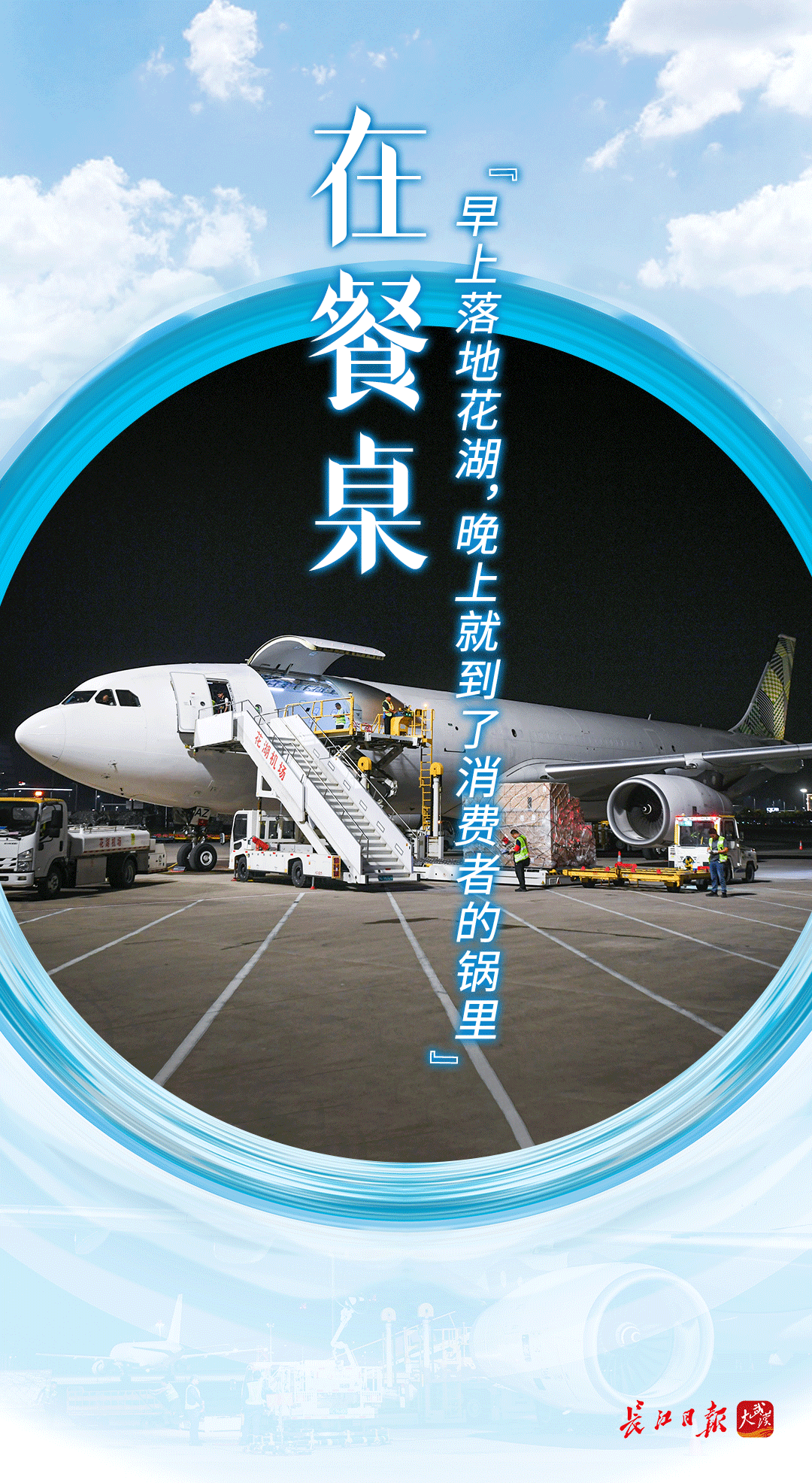 这批龙虾从加拿大哈利法克斯当地时间2日中午12时33分装机起飞,经安克雷奇中转,于北京时间3日晚7时27分降落花湖机场,两小时后运抵汉口北,4日凌晨3时前完成交接。“从大西洋到武汉,全程仅需19小时。即便发往全国其他城市,也控制在36小时内。”