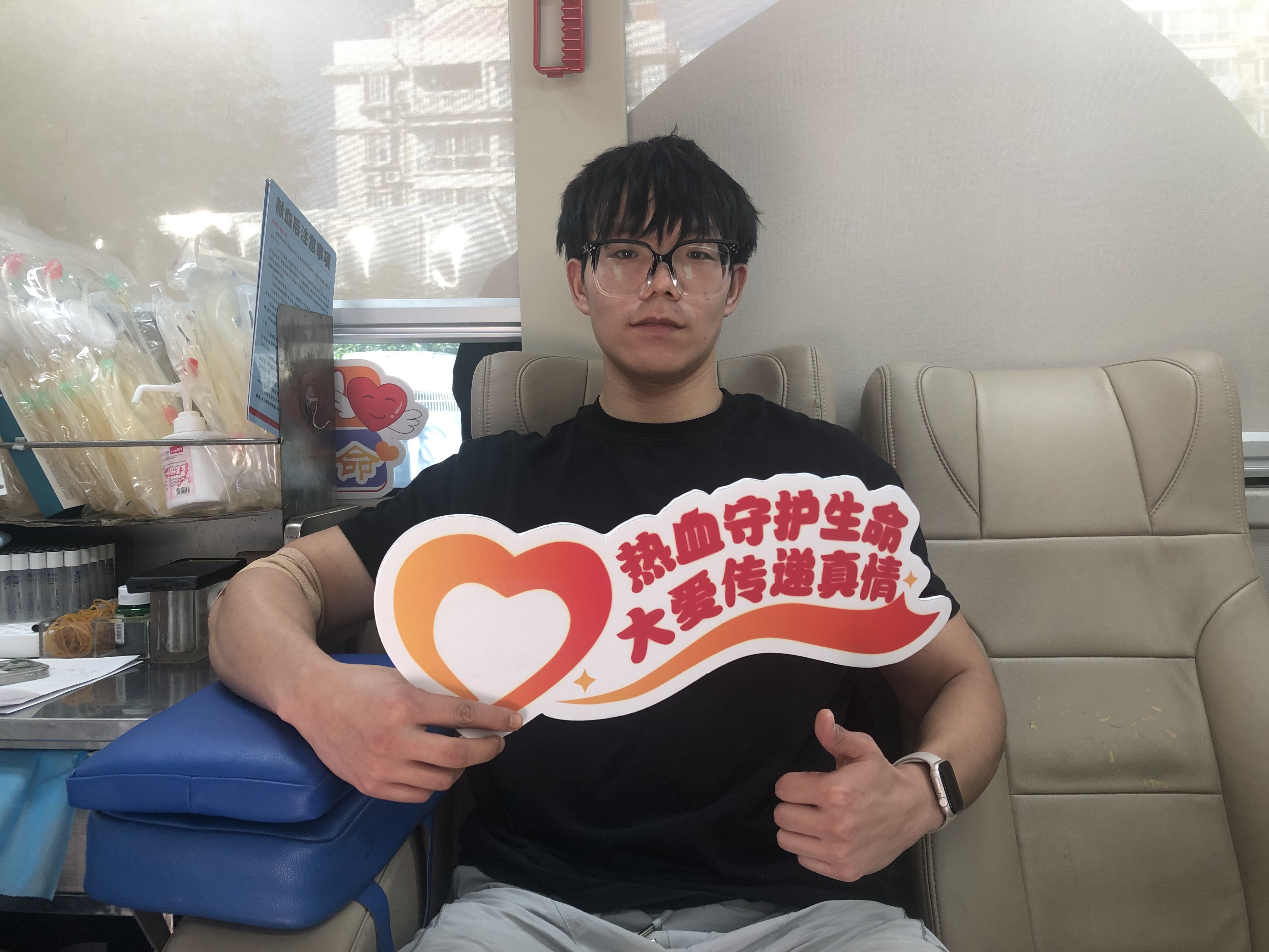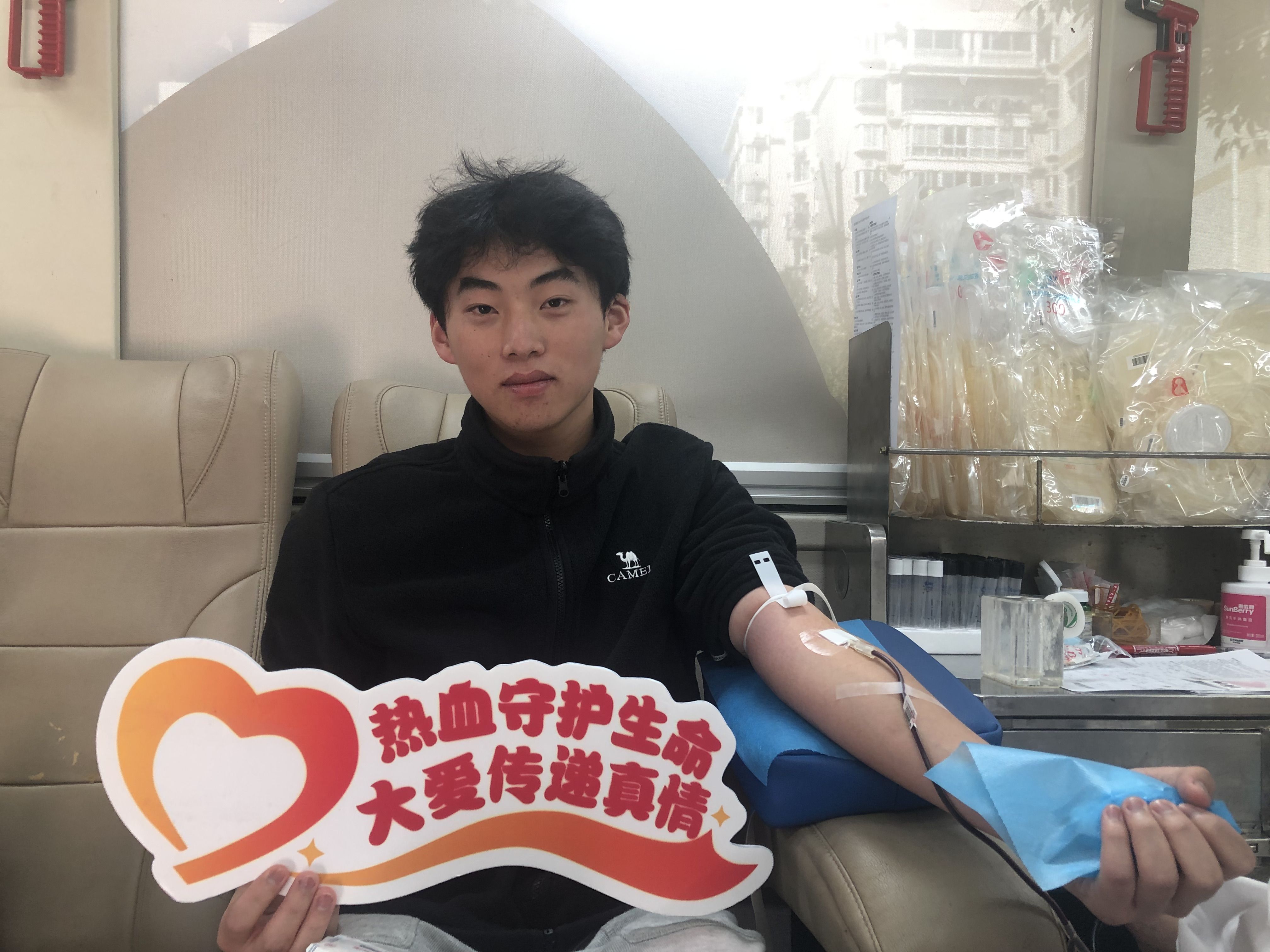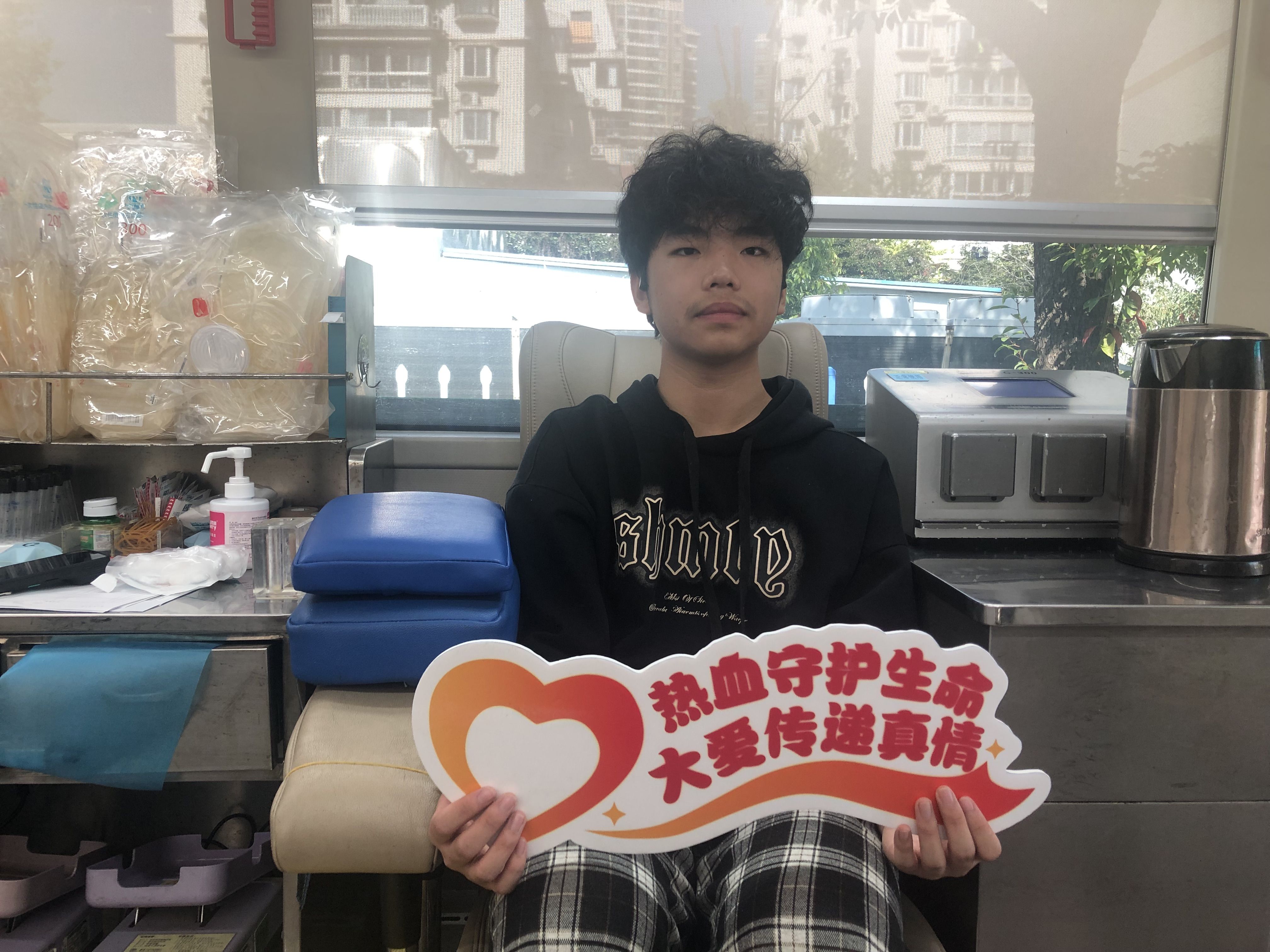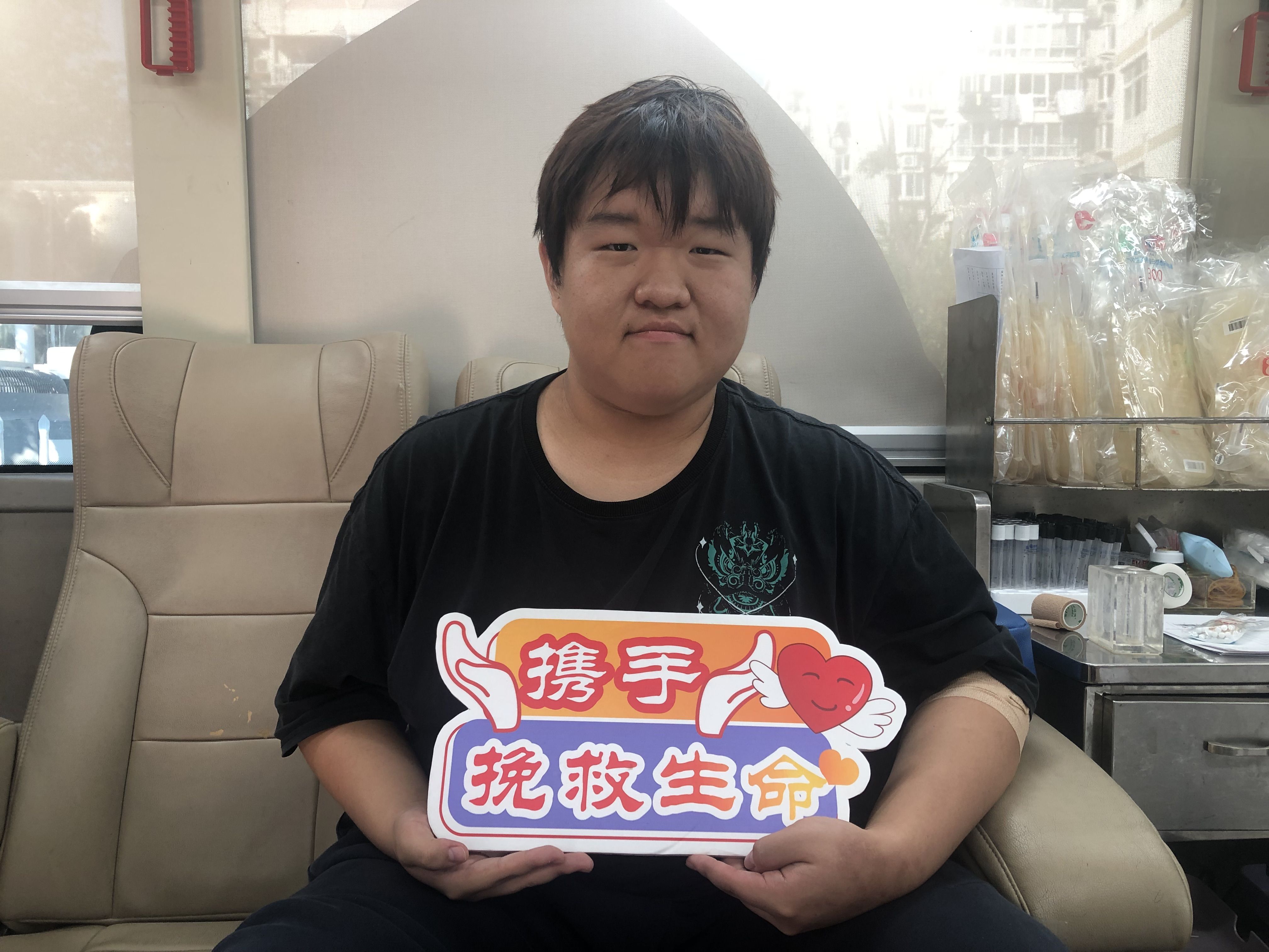 来自湖北十堰的护理学专业大一学生罗昌钰今年18岁,这是他第一次献血。“路过看到献血车进校园就被吸引过来了,家里有人生病输过血,父母也都参加过无偿献血,他们一直告诉我要多做有意义的事。”作为未来的医护工作者,罗昌钰深知血液的珍贵,用年轻的热血传递着家庭的爱心基因与职业的初心使命。