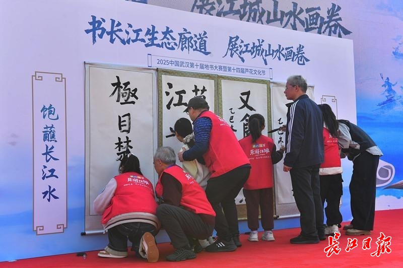 长江日报大武汉客户端11月22日讯 11月22日,2025中国武汉第十届地书大赛暨第十四届芦花文化节在汉口江滩三阳广场举行。来自全国各地的百余位书法爱好者齐聚长江之畔,以笔墨为桥、江滩为卷,共同绘就长江生态文化画卷。