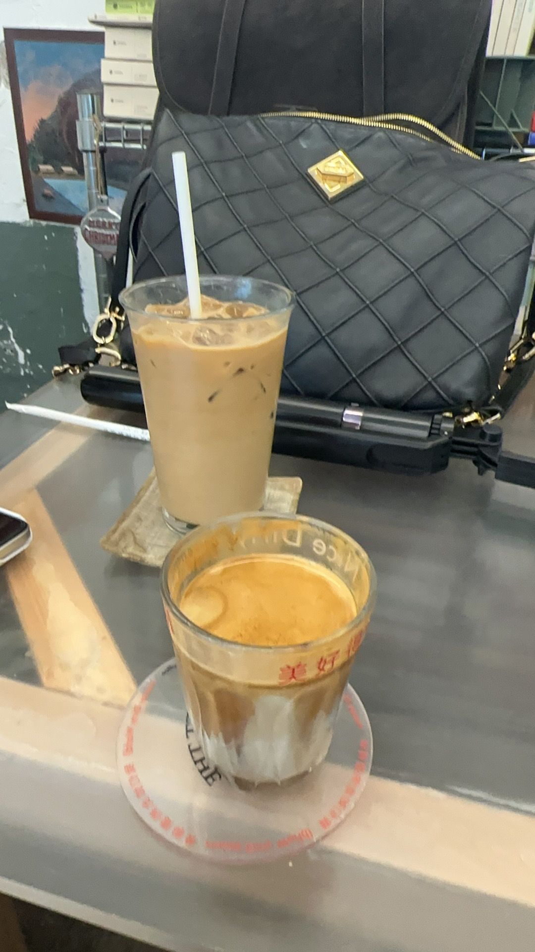 菜薹咖啡(前)与普通咖啡(后)的区别。 实习生代欣怡 摄