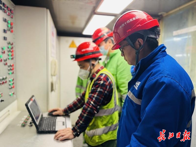 当天,长江日报记者深入余家头站地下30余米处,看到一台长达140米、高度相当于四层楼、总重3000吨的巨型盾构机静卧井底,犹如蓄势待发的钢铁巨龙。现场技术人员正在进行最后的调试,指挥人员通过对讲机下达指令,安全员检查防护设施。