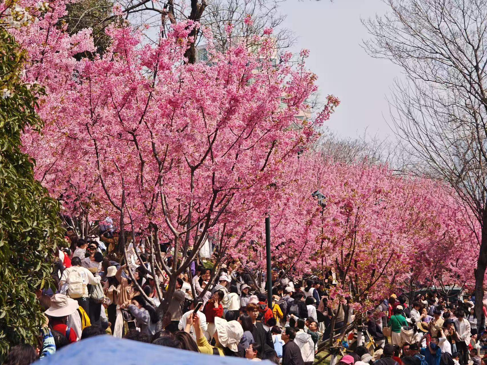 连续多年的樱花火爆,带动了武汉旅游市场的持续升温。从2020年武汉发出“相约春天赏樱花”的城市之约以来,武汉持续稳居赏樱城市顶流。据不完全统计,今年3月,已有全球60多个国家和地区的游客预订武汉景点周边酒店,近千个外地旅行团预约赏花行程。