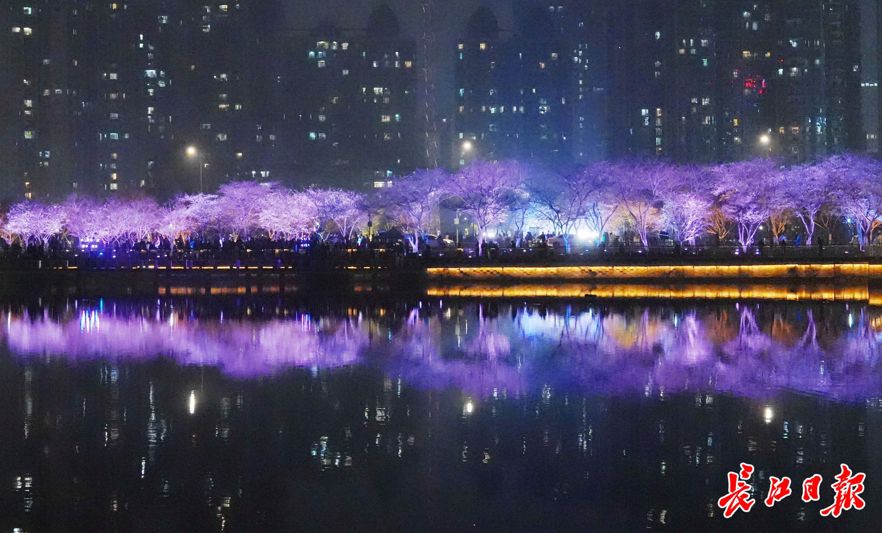 樱花的“擂台”,也是城市气质的较量。遍布全城的“公园兵团”与“街景游击队”,将浪漫融入市井生活。沙湖公园的“湖光映樱”、堤角公园的“樱花列车”、西北湖广场的“都市夜樱”、未来三路地铁站的最美樱花、珞喻路大黄村公交站的站台樱花……它们深入街巷、贴近生活,将樱花浪漫无缝嵌入市民的日常通勤、休闲漫步中,也真正实现了“江城无处不飞花”的盛景,满足了从深度游到微度假的全方位需求。