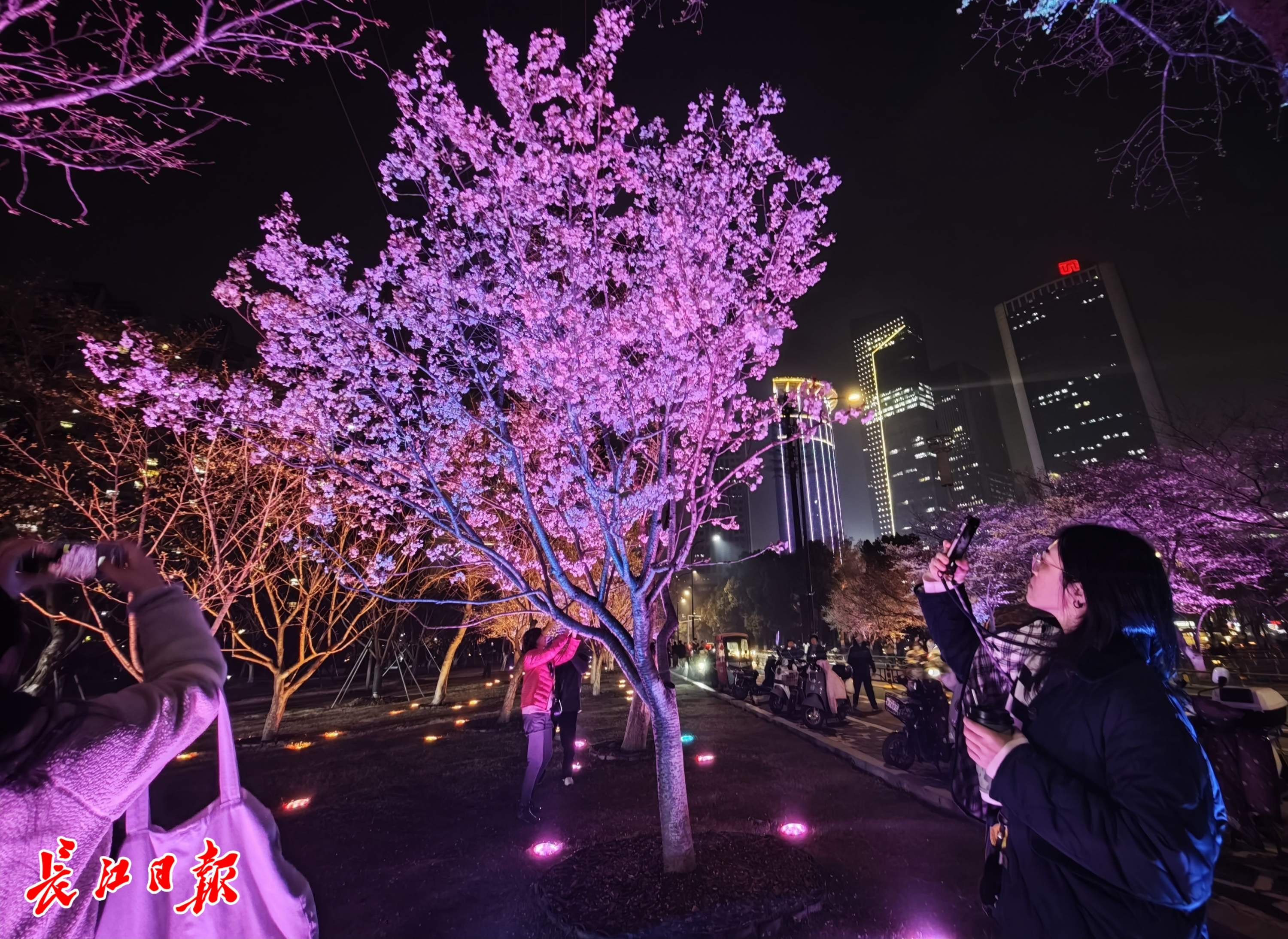 到了三月初,“粉色旋风”席卷江城。光谷广场的绿化带、龟山公园的半山腰、汉口江滩的秋千旁、汉正街的地铁口……航拍视角堪比AI特效。开得最猛的当数光谷星河附近的绿化带,200株樱花树是今年连夜种下的,以早、中樱花品种为主,没想到首开就爆花了。“摩天大楼间长出一片粉雾海,震撼又魔幻”,有游客说。