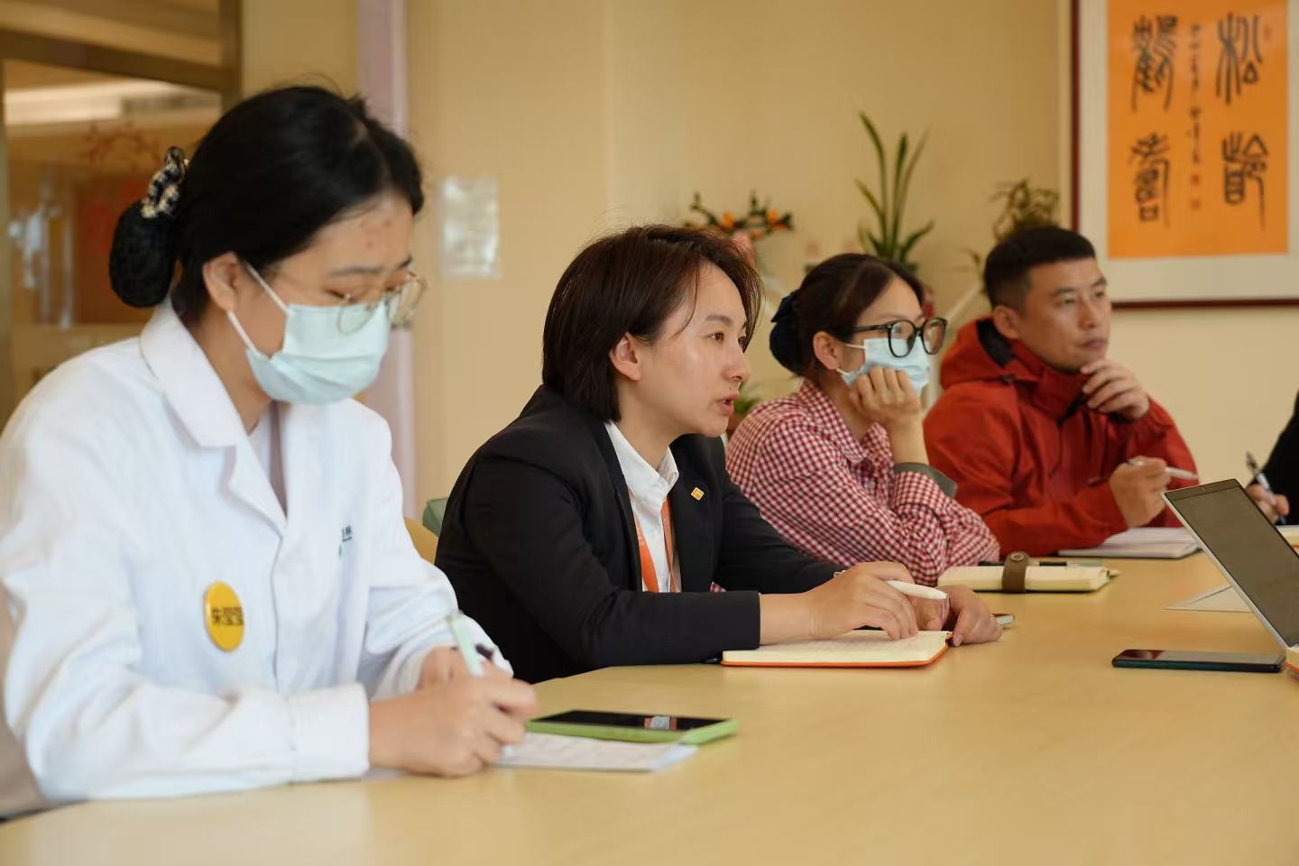 孔小艺(左二)正在多方会诊动态调整护理方案。通讯员供图