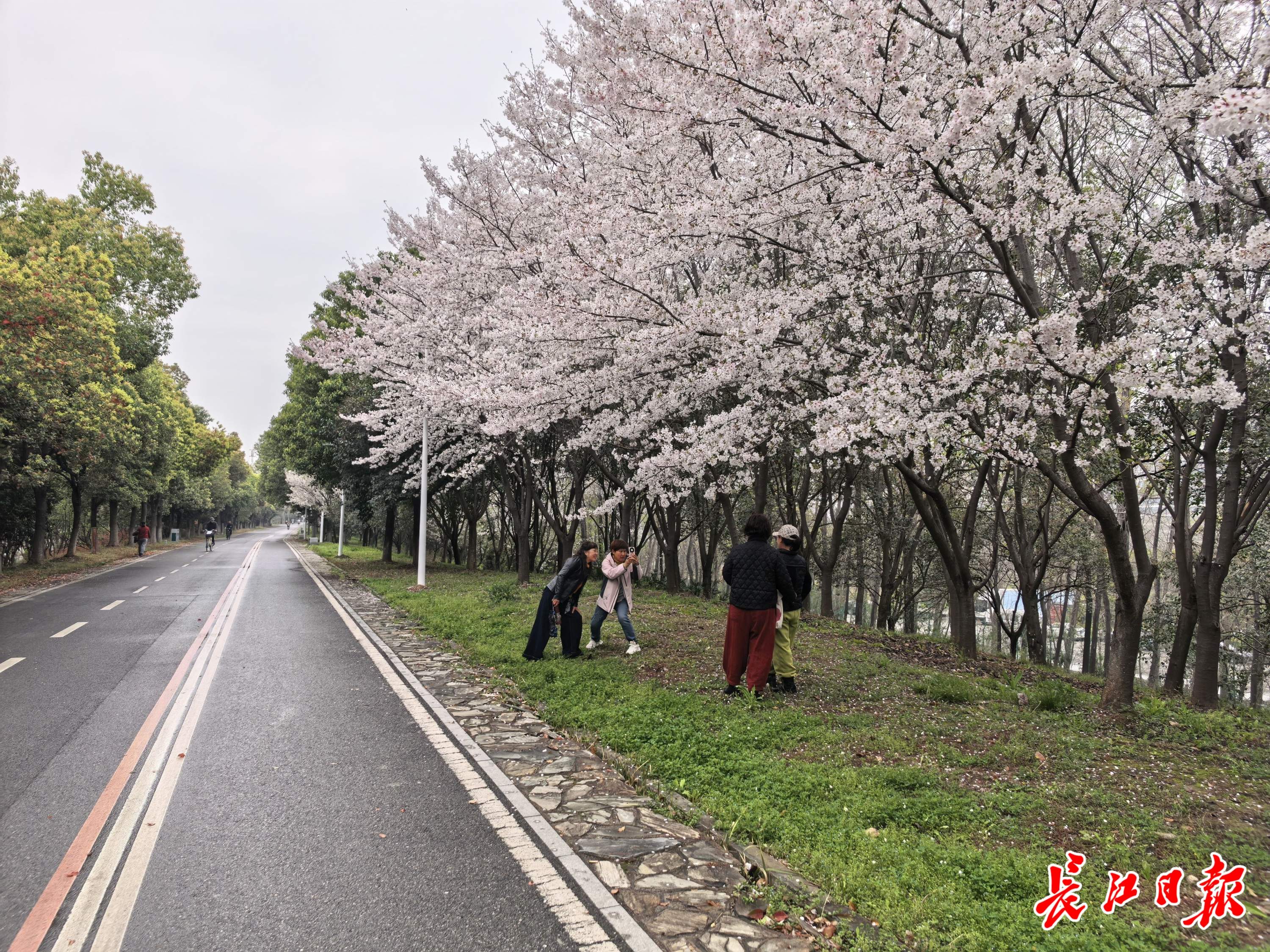 3月26日,张公堤上市民在赏花拍照。记者孙笑天 摄