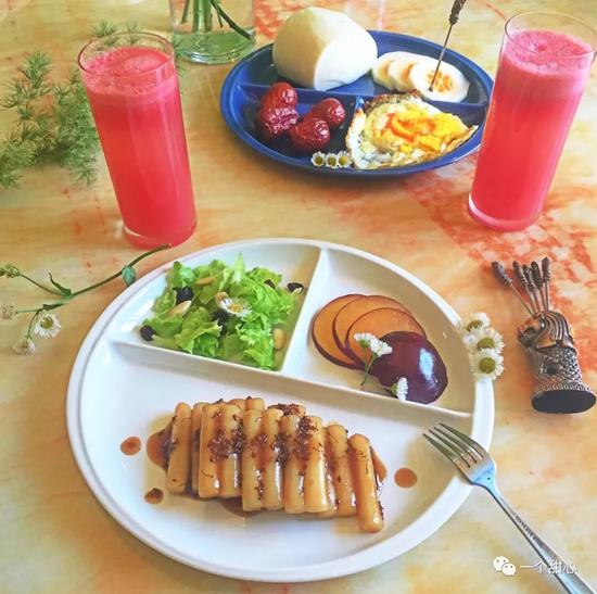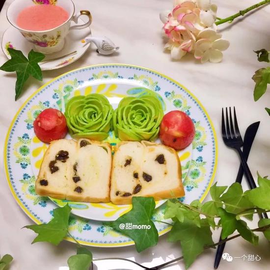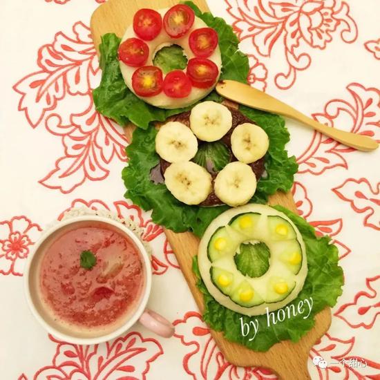 甜momo说,因为郭bobo经常不吃早餐,这让她特别心疼,所以就有了做爱心早餐的想法。还有自己是一名吃货,看到好吃的就喜欢自己尝一尝,然后自己做一做。食物本身就是一种艺术,亲手呈现它的制作过程,让面包香飘散在整个房间里,看着家人开启一天活力满满的工作,这件事想想就觉得美好。