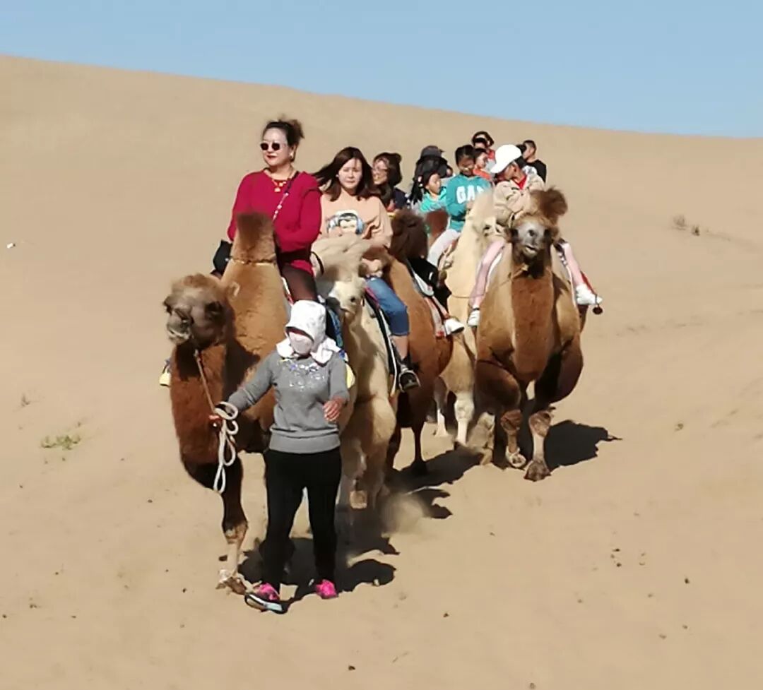 @蔡应璋:骑着骆驼行走在内蒙古包头市七星湖景区库布其沙漠上,驼铃声声。