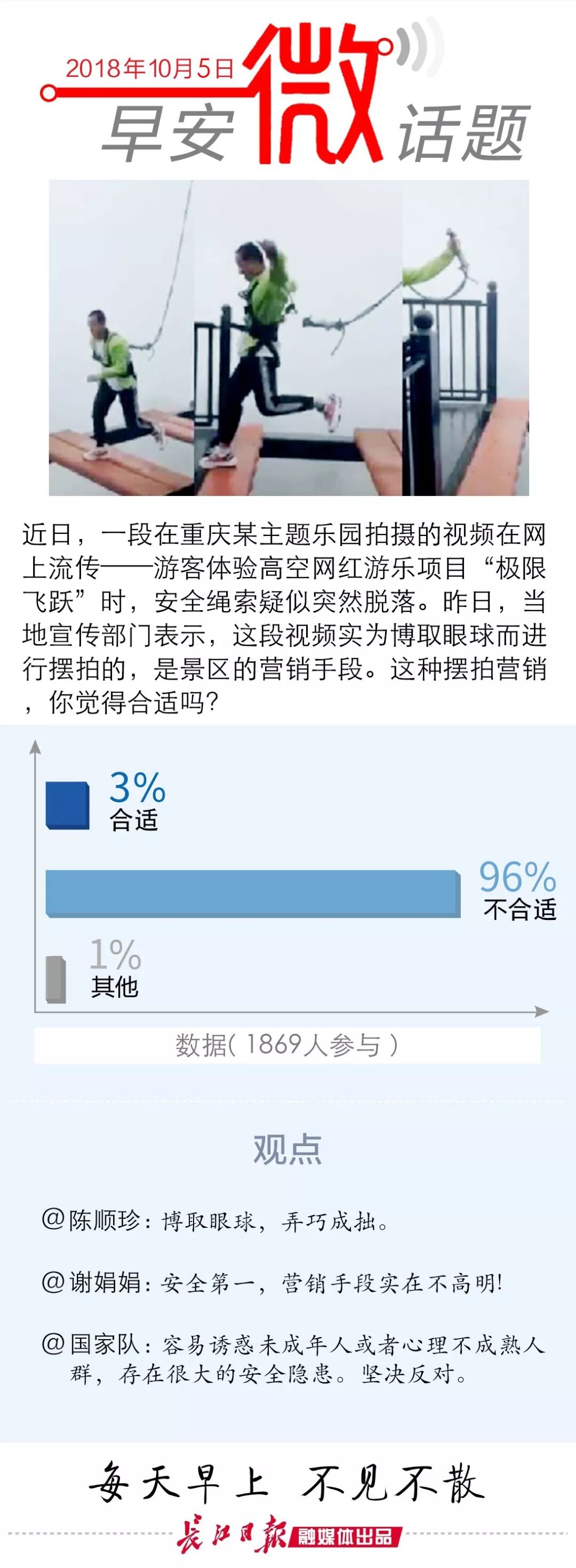 画面中游客在飞跃时保险扣突然脱落