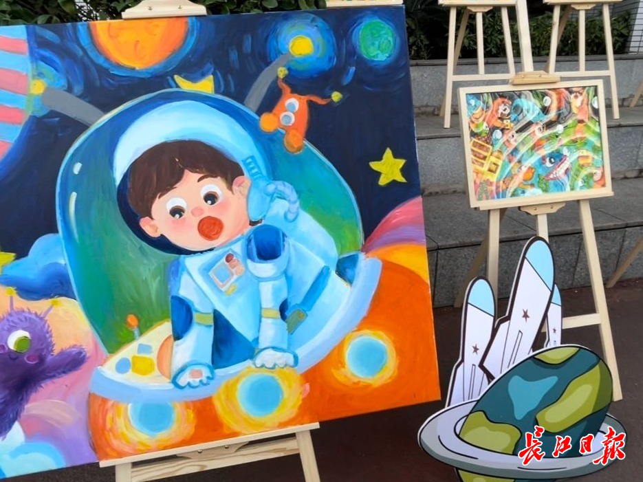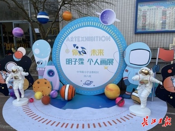 看着明子霂创作的画作越来越多,学校和明子霂家长商量,在校园里为他办主题画展。“学校愿意给每个孩子提供展示的平台,并让航天科技梦和艺术的种子在校园里发芽、成长。”该校相关负责人说。