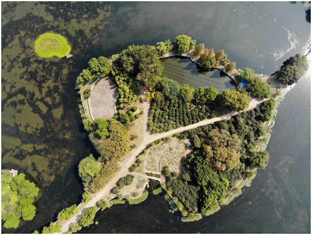 小岛形似一颗倒立的爱心,一条小径不仅贯穿其中,还是通往“心林”的道路。有些小浪漫,只有在这个特殊的角度,才能惊喜地发现。