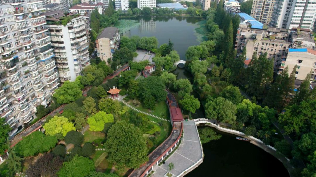 在武汉繁华地带的腹地,高楼鳞次栉比,寸土寸金的商圈之中藏着一片绿洲。茂密的植被犹如一颗晶莹剔透的绿宝石,闪闪发光。