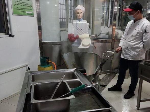 新洲四中食堂请来刀削面机器人“好帮手”。通讯员陶火应 摄