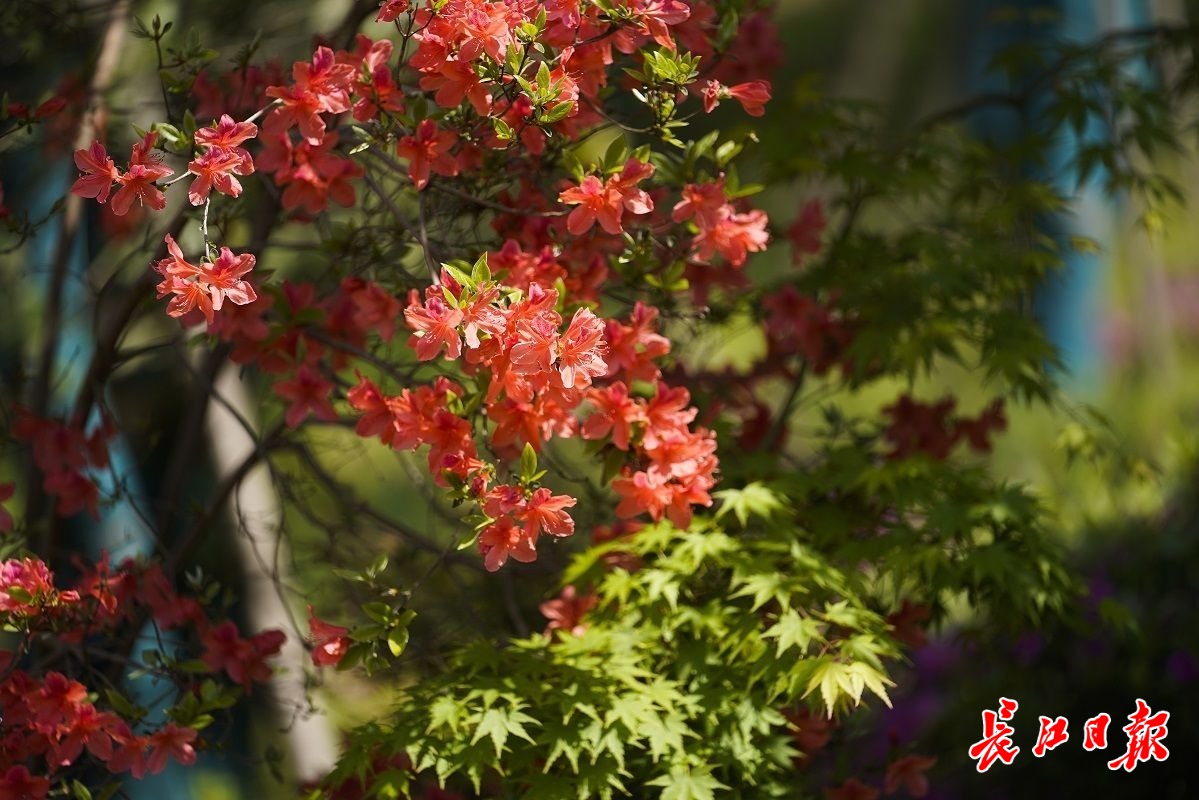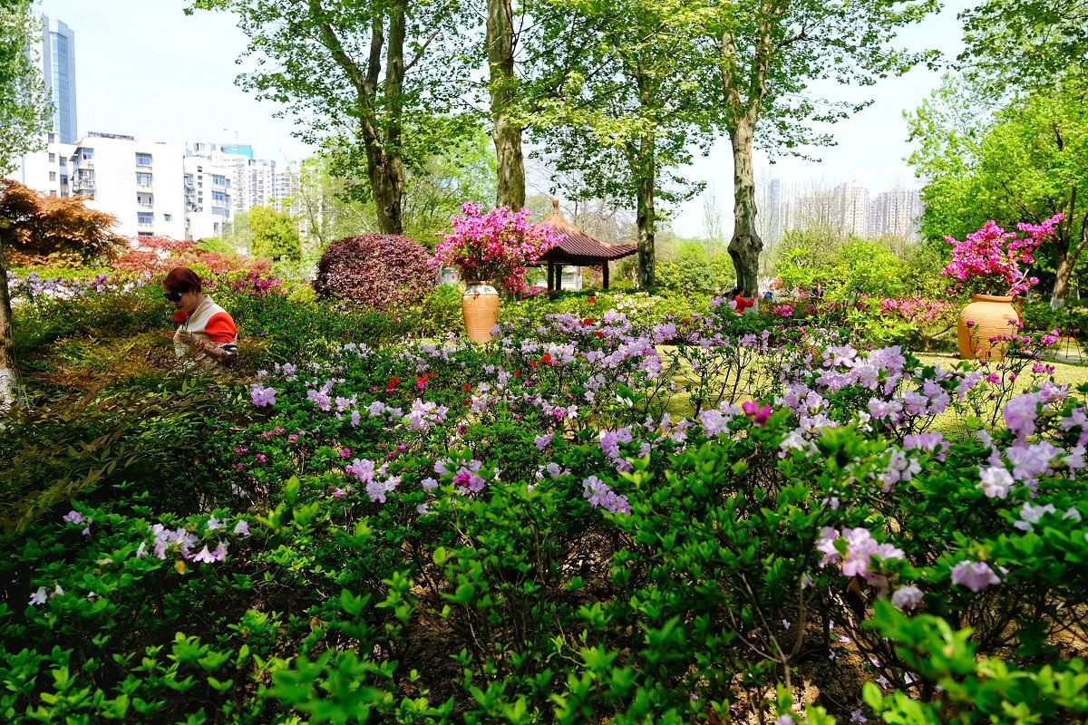 公园也能赏杜鹃花海青山公园70余种、20万株杜鹃已进入盛花期,园径两旁的杜鹃竞相开放,一簇一簇,一片一片,宛若花海。今年青山公园展出了新引进栽培的20余种武汉较罕见的杜鹃,有深红色杜鹃“红皇冠”,小巧绚丽;粉红色的重瓣杜鹃“王妃”,清秀典雅;单瓣深粉色杜鹃“粉丝带”,舒展轻巧。更难得的是这三种杜鹃一年能开三季花,即初春、仲夏、深秋都能一睹花容。
