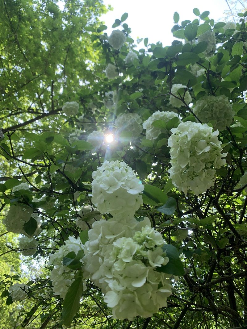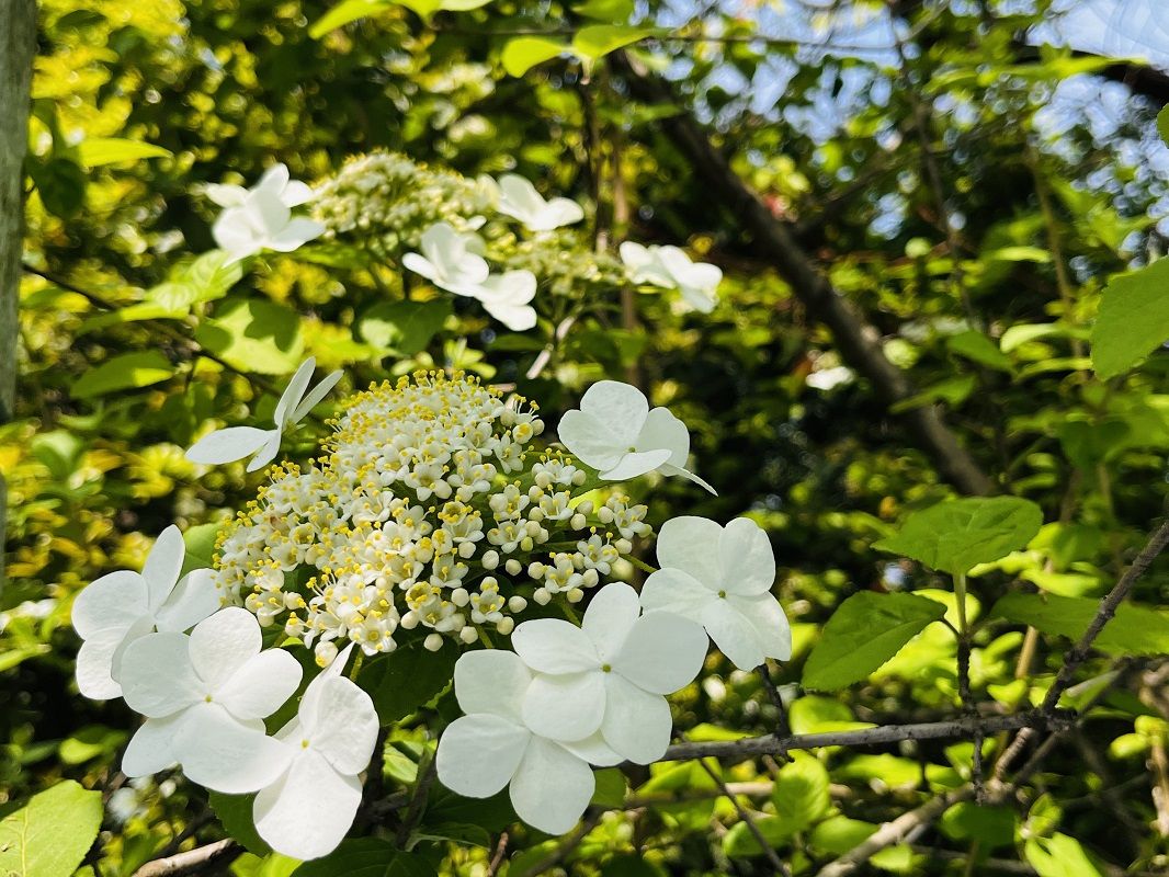 琼花、木绣球姐妹淡雅素美中山公园的园花琼花,眼下也进入了盛花期,洁白如雪,形貌清雅自带仙气。主要分布在琼花园和四顾轩附近,共有60余株。琼花为扁平状,和它十分相像,但呈球状的是其同属姐妹木绣球。金银湖国家湿地公园里,有60余株木绣球,分布在清风绿道和大门口广场区域;解放公园月季园附近也有木绣球,虽然数量不多,但每一株都花量巨大,花开如瀑;和平公园既有琼花,也有木绣球,主要分布在公园北区、月季园广场、二级园路附近。