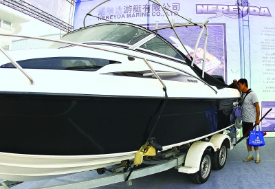2013年9月,第二届武汉国际休闲产业博览交易会上展出的豪华游艇 资料图片