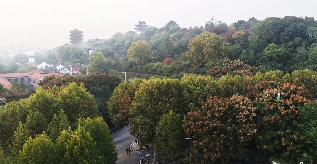 从黄鹤楼东门出发,一路途径紫薇苑、白云阁、主楼、南楼,与200多种植物偶遇,在光影中收获满满秋意。