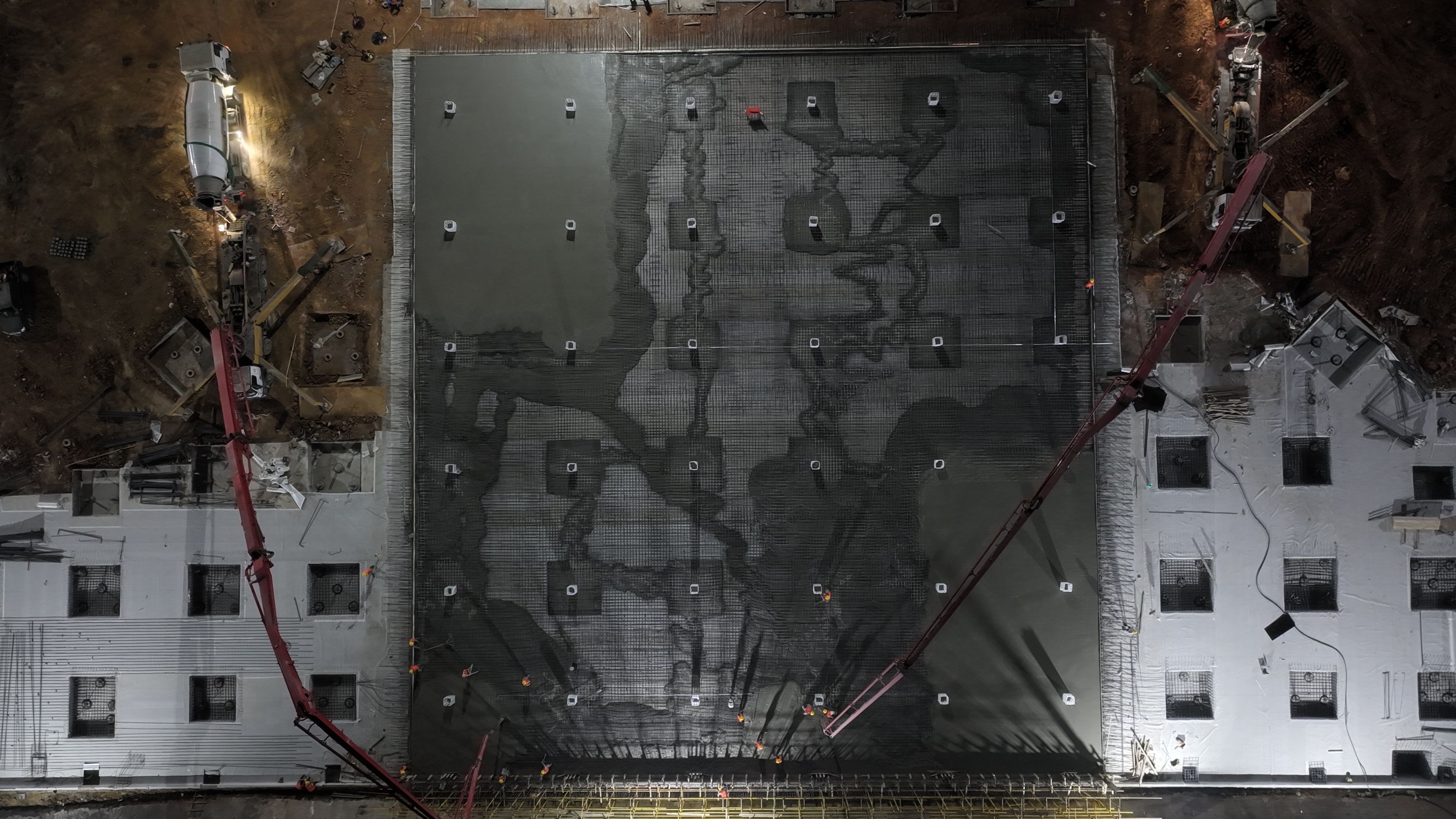 长江日报大武汉客户端4月12日讯(记者涂静 郝天娇)4月12日早上6点,历经14小时的连续浇筑,中建八局承建的武汉路特斯全球总部智造中心一期项目首块底板浇筑工程圆满完成,在武汉经开区上演了一场盛大的施工盛宴,共按计划浇筑面积约1600㎡、浇筑混凝土方量1200m³。标志着该项目地基基础工程施工取得了阶段性成绩,为主体结构全面施工拉开序幕。