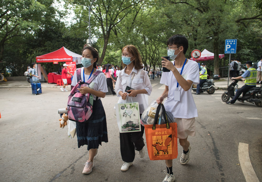 9月2日,志愿者帮助欧阳程程(中)把行李送回宿舍。新华社记者 肖艺九 摄