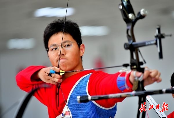 长江日报大武汉客户端4月19日讯(记者朱文秀)黑黑的脸庞、高高的个头,戴着眼镜的武汉射箭队队员王祎伟讲话轻声细语,因为害羞总是低着头,看起来像个文静书生。不过,在教练夏时敏的眼里,自己的弟子可不是这样的个性,“他训练的时候才狠,完全是另外一个样子”。