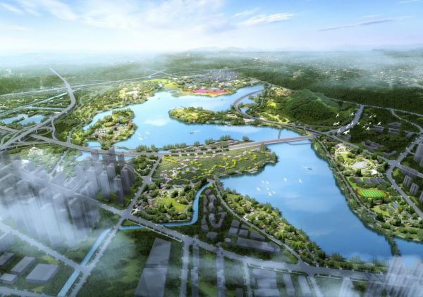 龙阳湖公园的龙阳半岛项目是公园近期实施范围中“五园”中的一园,深入龙阳湖内呈半岛形,具有280°观湖视野,是全园的景观核心,总面积16.68万平方米。