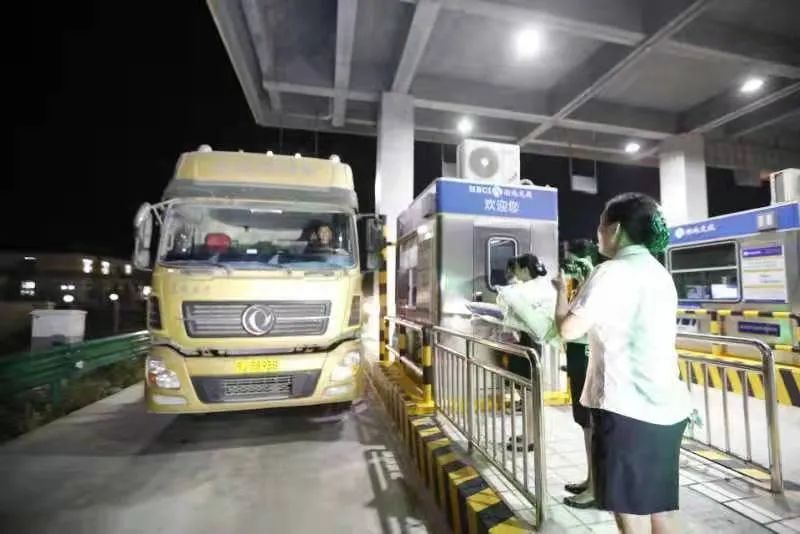 第一辆从黄石驶入棋盘洲长江公路大桥的车辆。通讯员周巍 摄