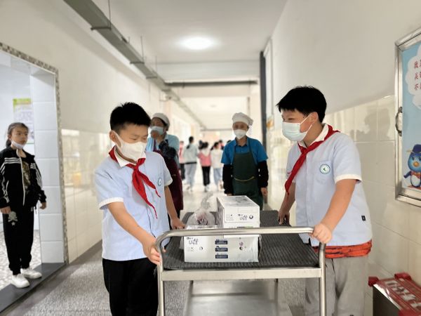五(8)班学生刘子皓说,他跟后勤师傅们一起运送牛奶,从中他体会到什么叫“吃苦耐劳”。一箱箱的牛奶要逐层运送,后勤师傅们准确知晓每个班的位置和牛奶数目,既考验体力又考验耐心。他以后会主动“搭把手”,帮师傅们分担一些力所能及的事,用行动响应“劳动最光荣”的号召。